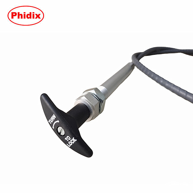 The heavy-duty push-pull control cable with twist lock handle is a high-performance mechanical control solution designed for applications requiring precise linear motion and secure position holding. Equipped with an ergonomic Twist Lock handle and a threaded bulkhead mount, this control cable allows operators to push or pull the cable to the desired position and lock it firmly in place by rotating the handle. Constructed with a reinforced outer conduit and a high-strength inner core, this cable assembly delivers smooth operation, excellent load capacity, and long-term reliability in demanding environments.